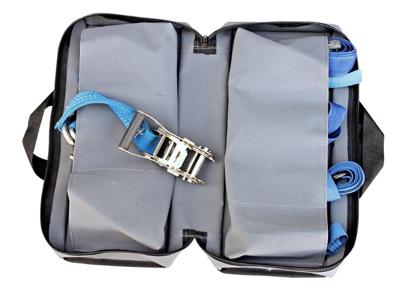 An essential solution for storing and organising tie-down equipment such as ratchet straps, guide ropes, and cords. This practical storage bag features a dedicated seven-pocket organiser, keeping gear neatly separated and easy to access. Built for durability, it is crafted from heavy-duty materials and fitted with robust zips and sliders, ensuring long-lasting performance in demanding environments.